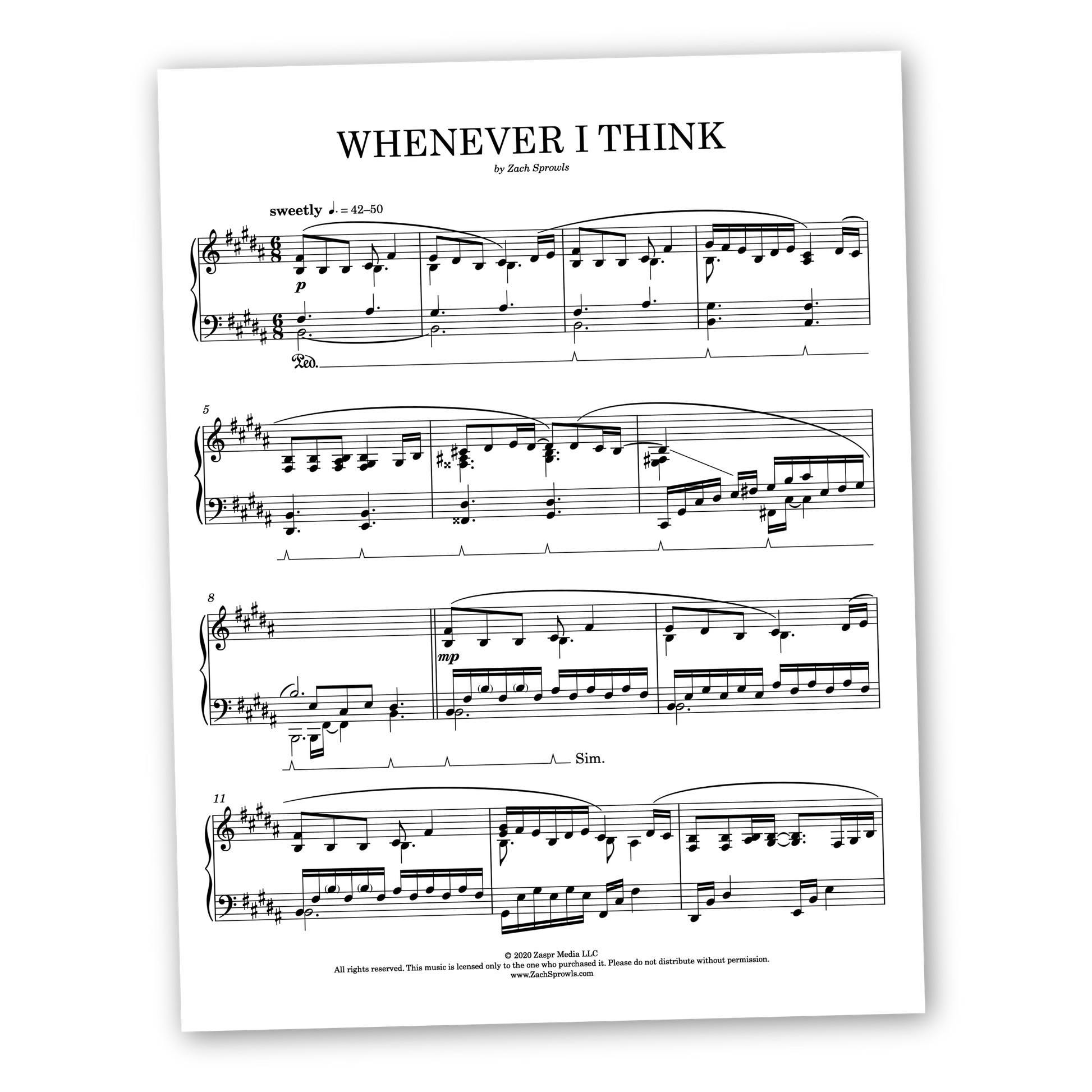 High quality, piano solo sheet music for Whenever I Think transcribed exactly as performed on the album Worship in the Sound of Piano, Vol. 1 and provided in two keys - the original (B Major) and transposed (C Major).