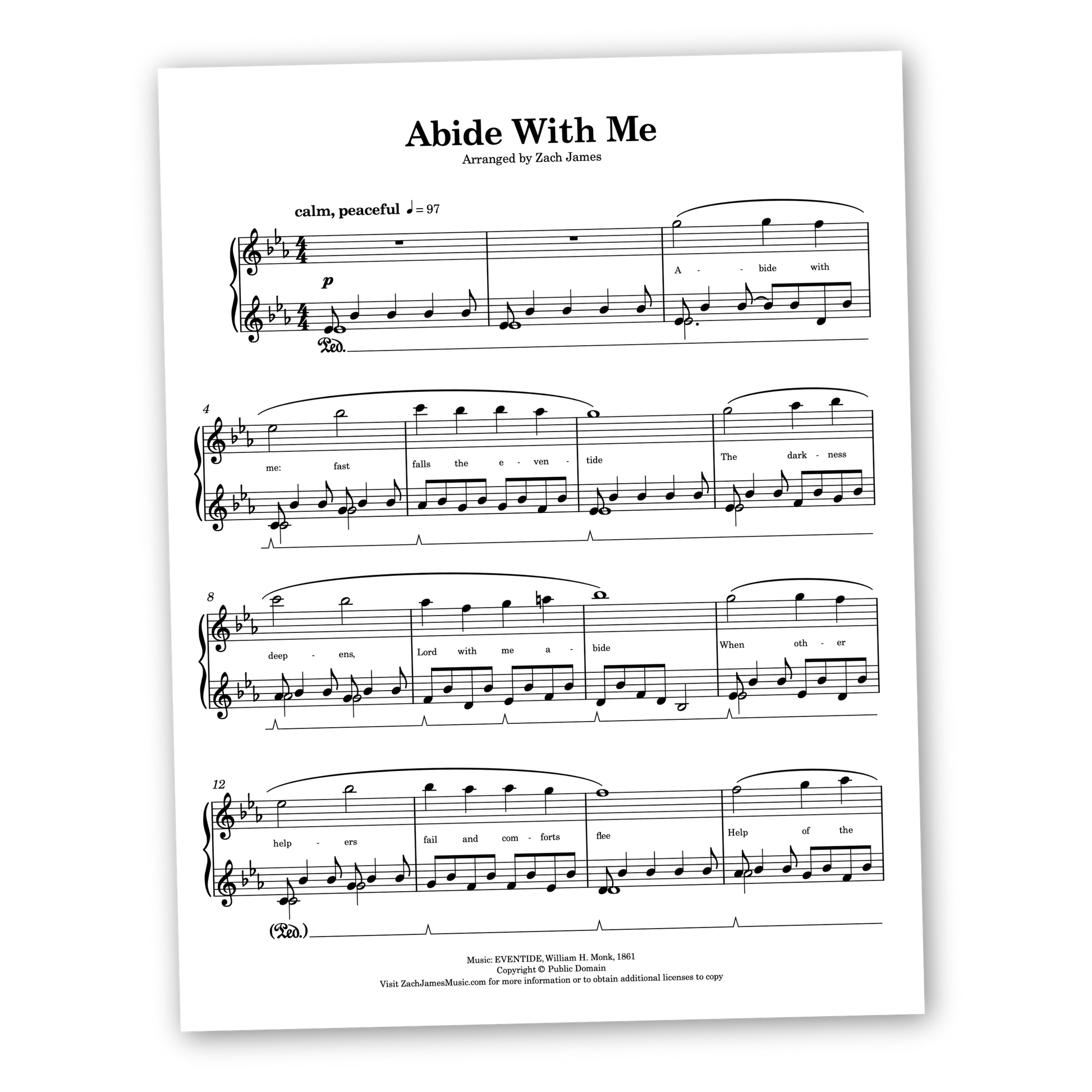 A calm and peaceful arrangement for piano solo of the hymn, Abide With Me. Featuring an enchanting accompanimental figure, this setting is appropriately beautiful and simple. For intermediate pianists, it's perfect for personal, home, church, or educational use.