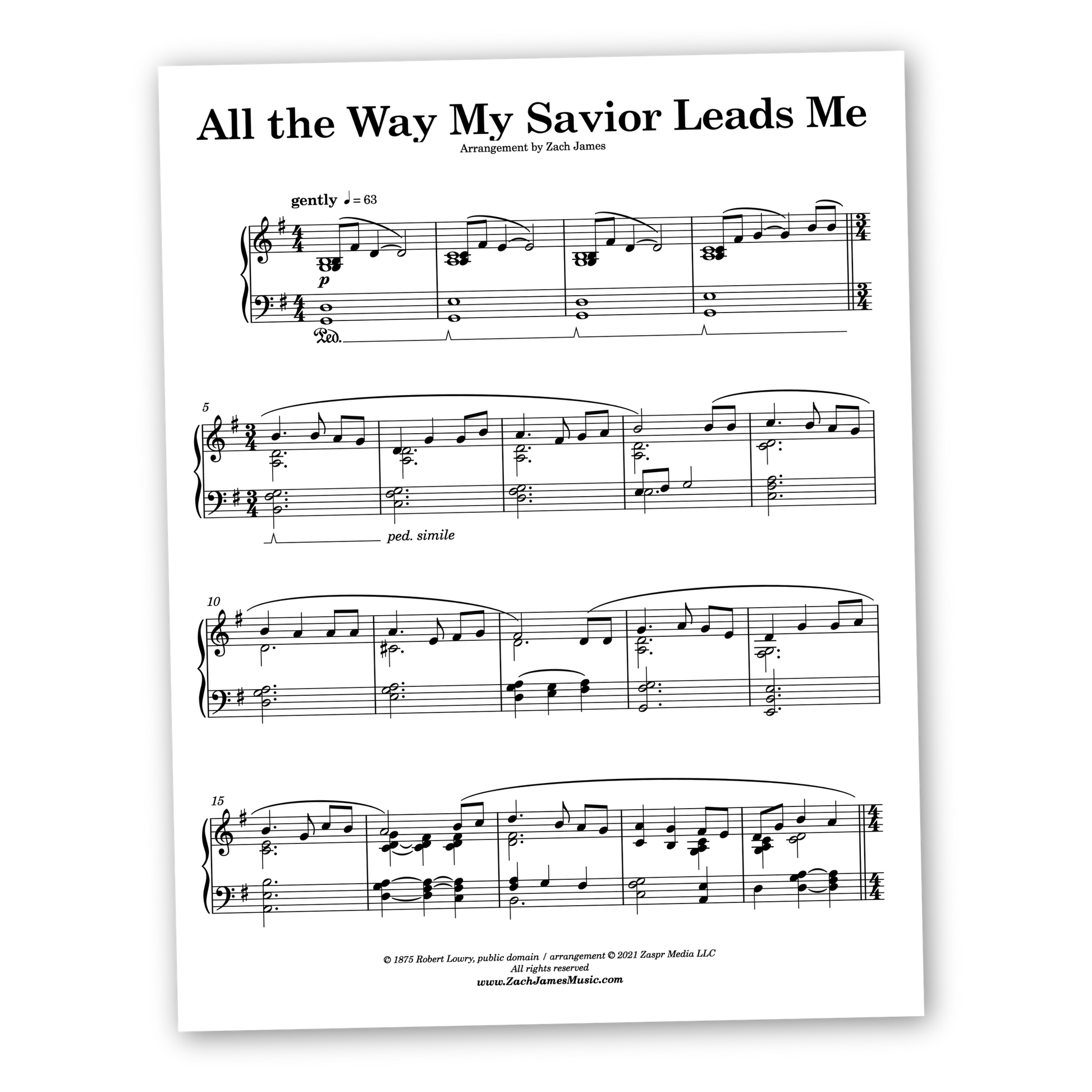 A gentle and stirring arrangement for piano solo of the hymn, All the Way My Savior Leads Me. Featuring a simple melodic motif, rich harmony, and inspiring instrumental section, this setting for intermediate-level pianists is sure to fill hearts and minds with peace.