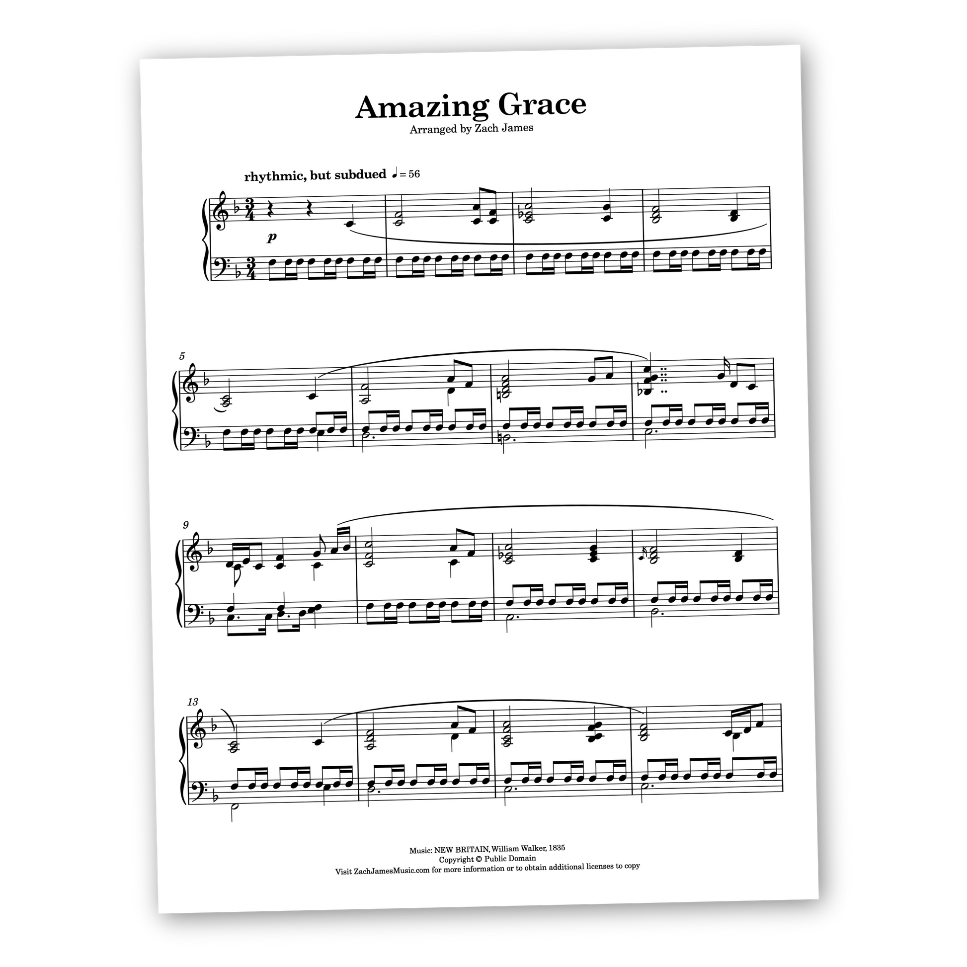 A subtly groovy arrangement for piano solo of the hymn, Amazing Grace. Utilizing an ostinato, arpeggios, and gospel harmonies, this setting is both meditative and fun. Its versatility makes it perfect for any occasion, eliciting both inner reflection and the need to sing aloud! For intermediate pianists.