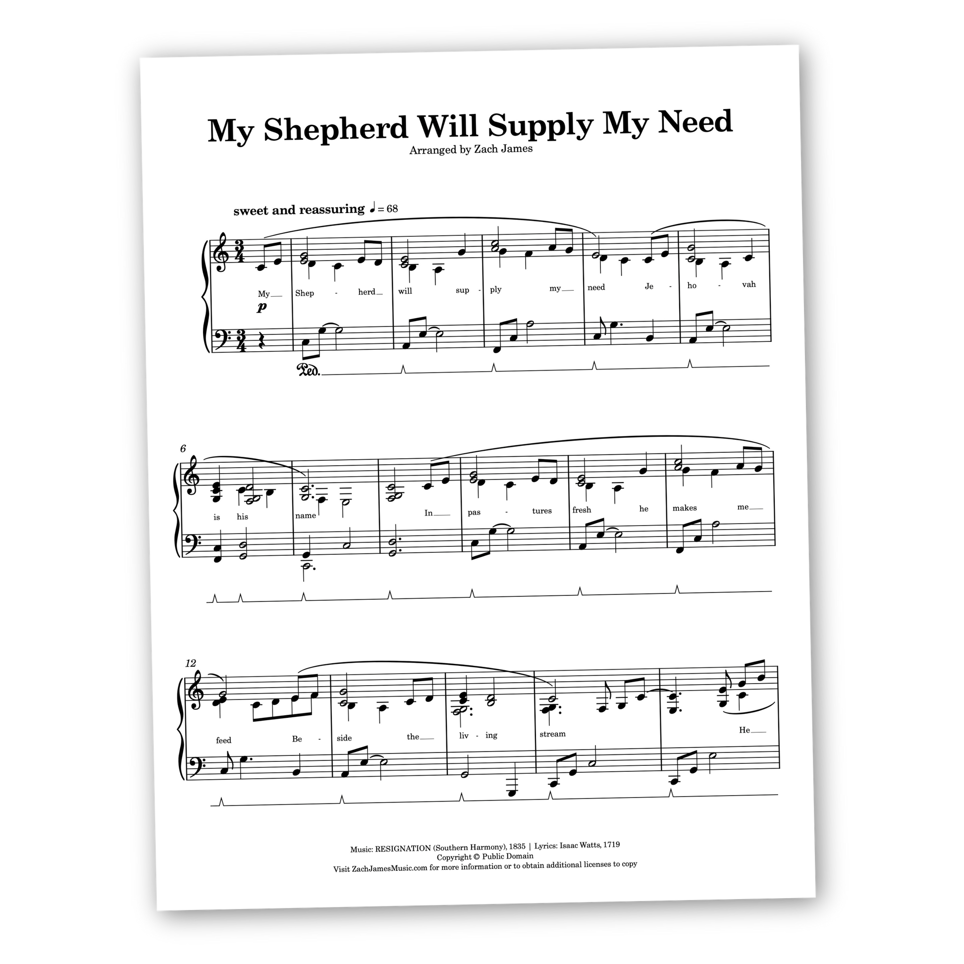 A sweet and reassuring arrangement for piano solo of the hymn, My Shepherd Will Supply My Need. This eminently gorgeous setting by Isaac Watts of Psalm 23 is paired with a motif of oscillating 2nds and 7ths to create an inspiring arrangement that's sure to fill the heart with comfort and assurance. For intermediate pianists, it's perfect for meditation, reflection, education, or performance.