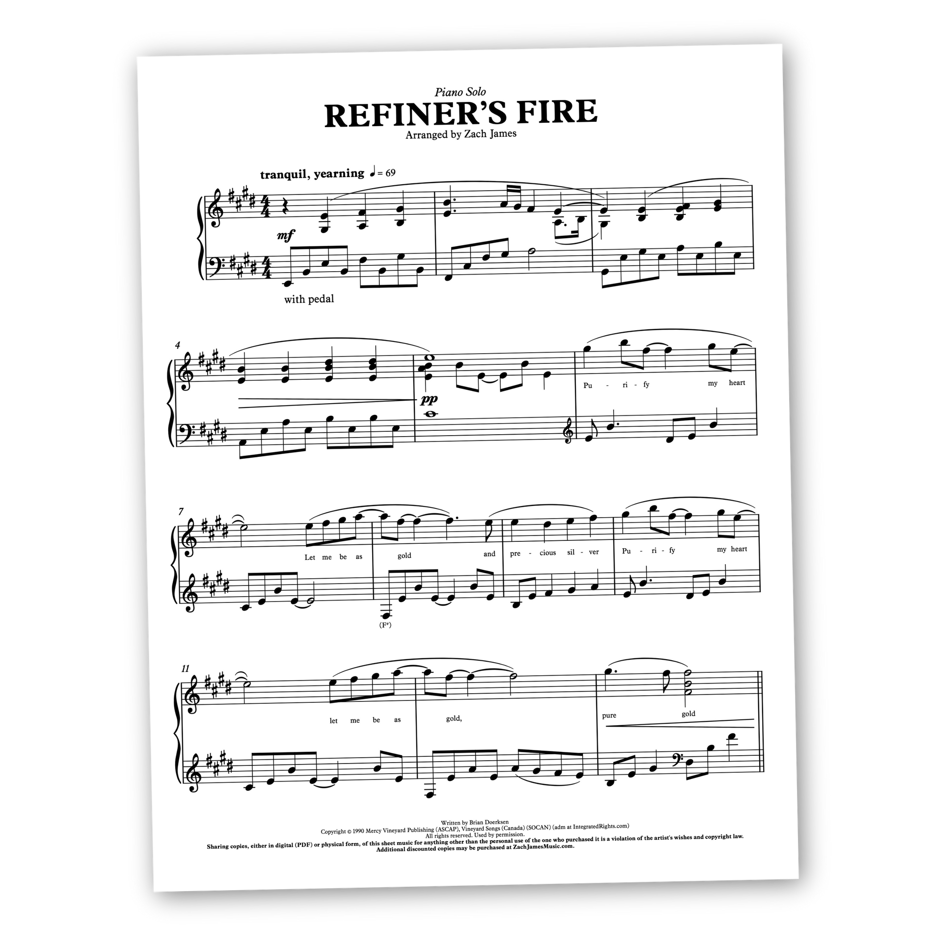 A gentle and yearning setting for piano solo of the worship song, Refiner's Fire, by Brian Doerksen. Featuring a gorgeous countermelody and a soul-stirring instrumental section, this arrangement is as earnest as the prayer it accompanies. For intermediate pianists, it's ideal for reflective contexts, meditation, and quieter performances.