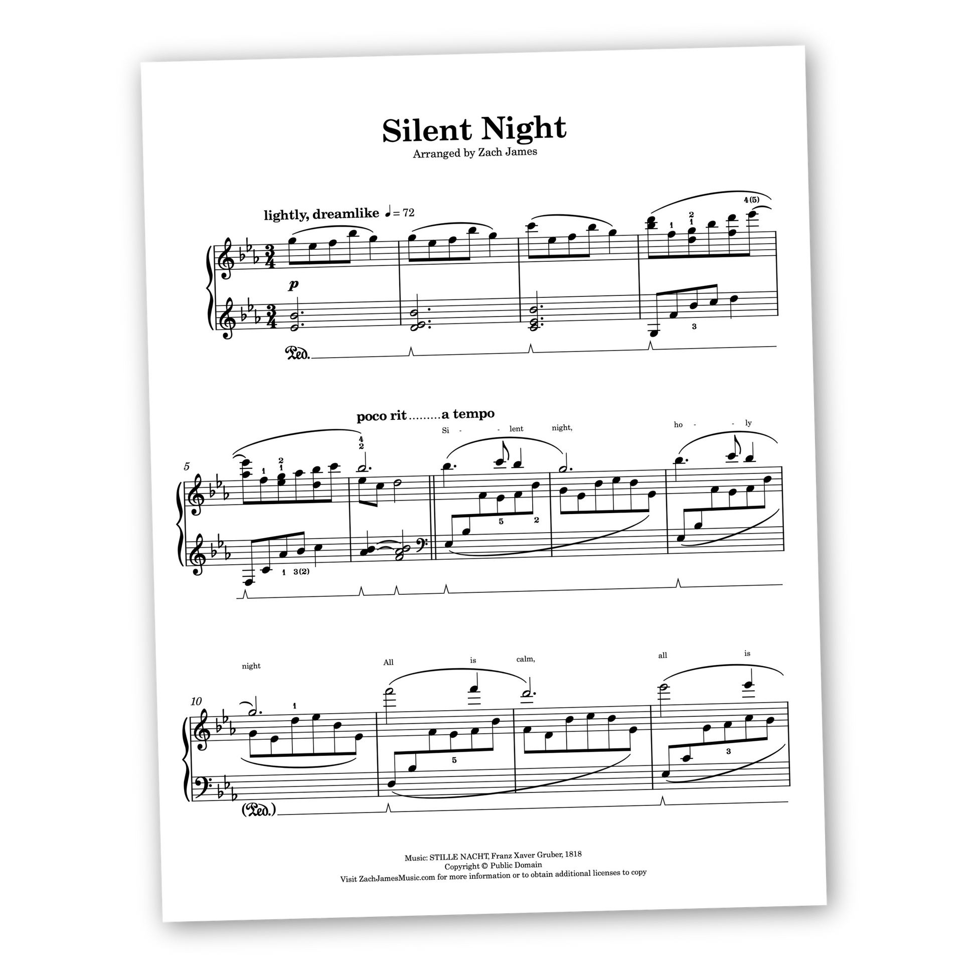 High quality, piano solo sheet music for the Christmas carol Silent Night.
